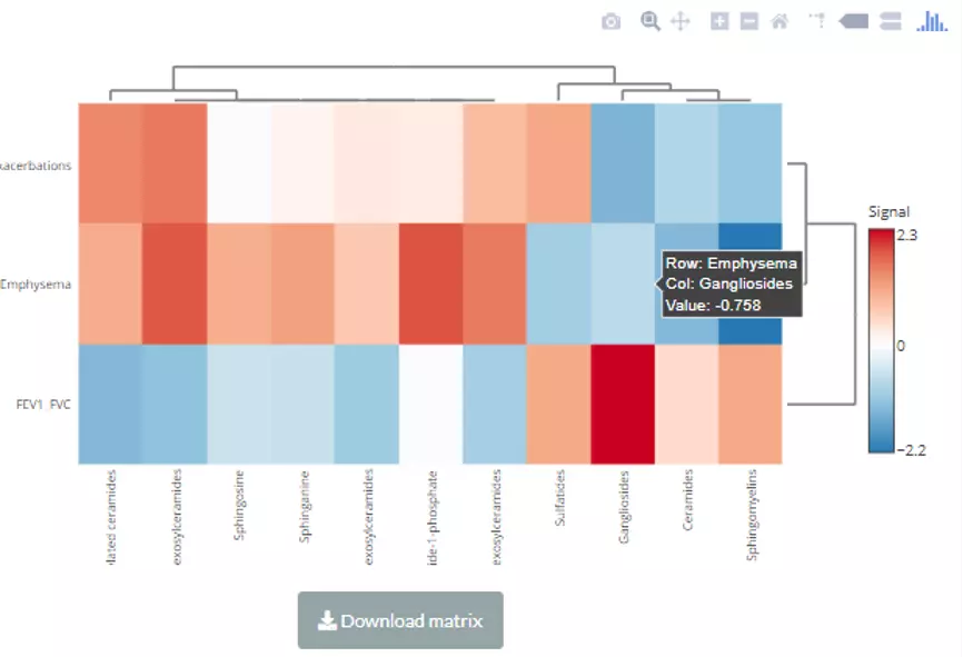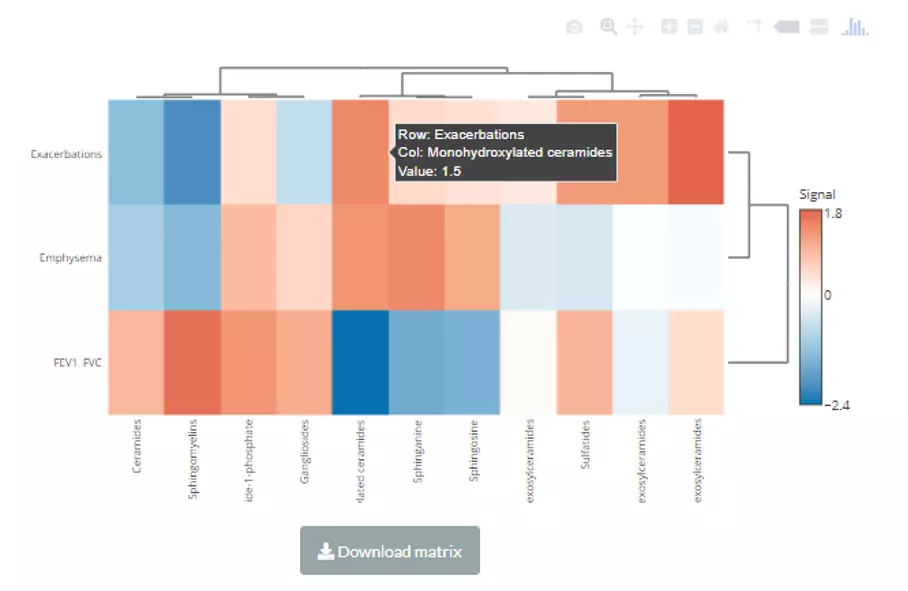 The rows of the heatmap will show clinical features, whereas the columns illustrate the lipid characteristics.