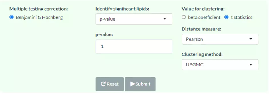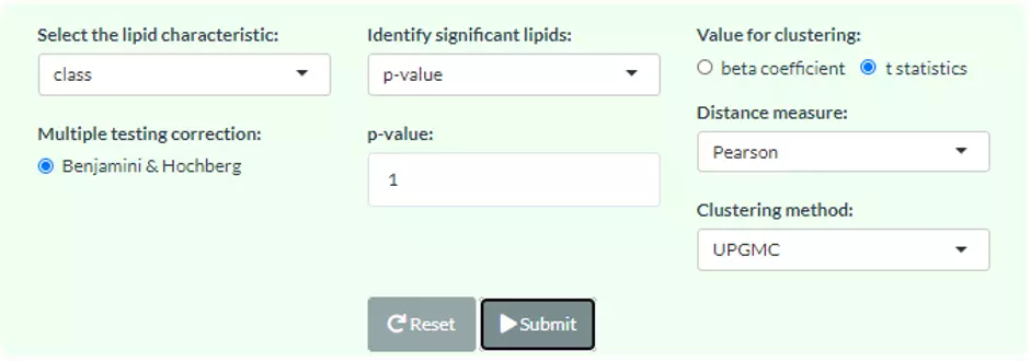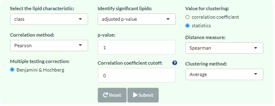 Users can use either correlation coefficient between clinical features and lipid characteristics or choose their statistics instead of clustering values.