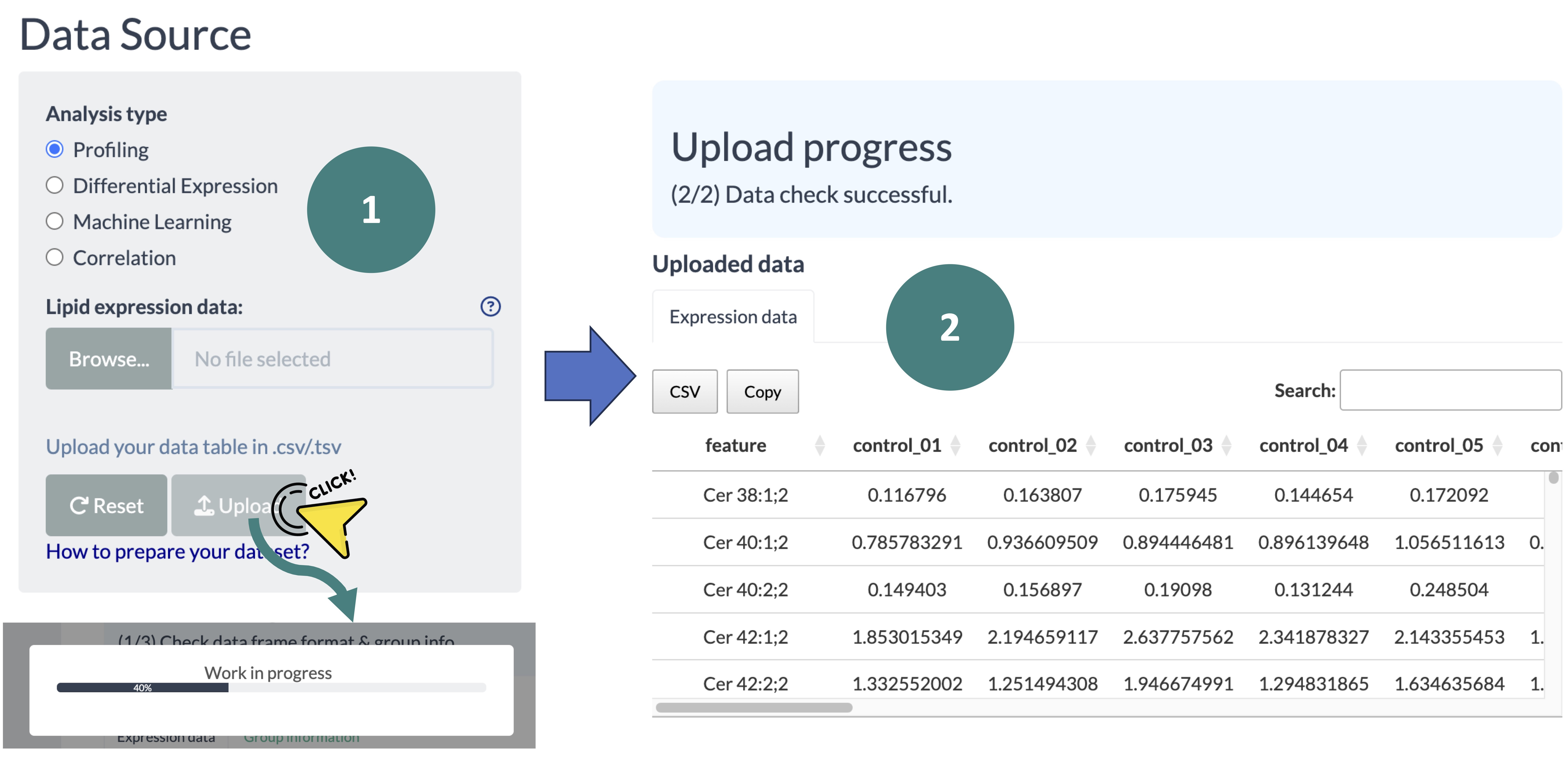 For the profiling analysis, you are required to upload only the Lipid Abundance Data in a CSV format.