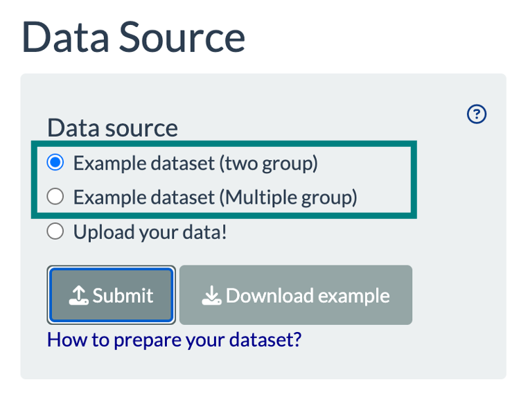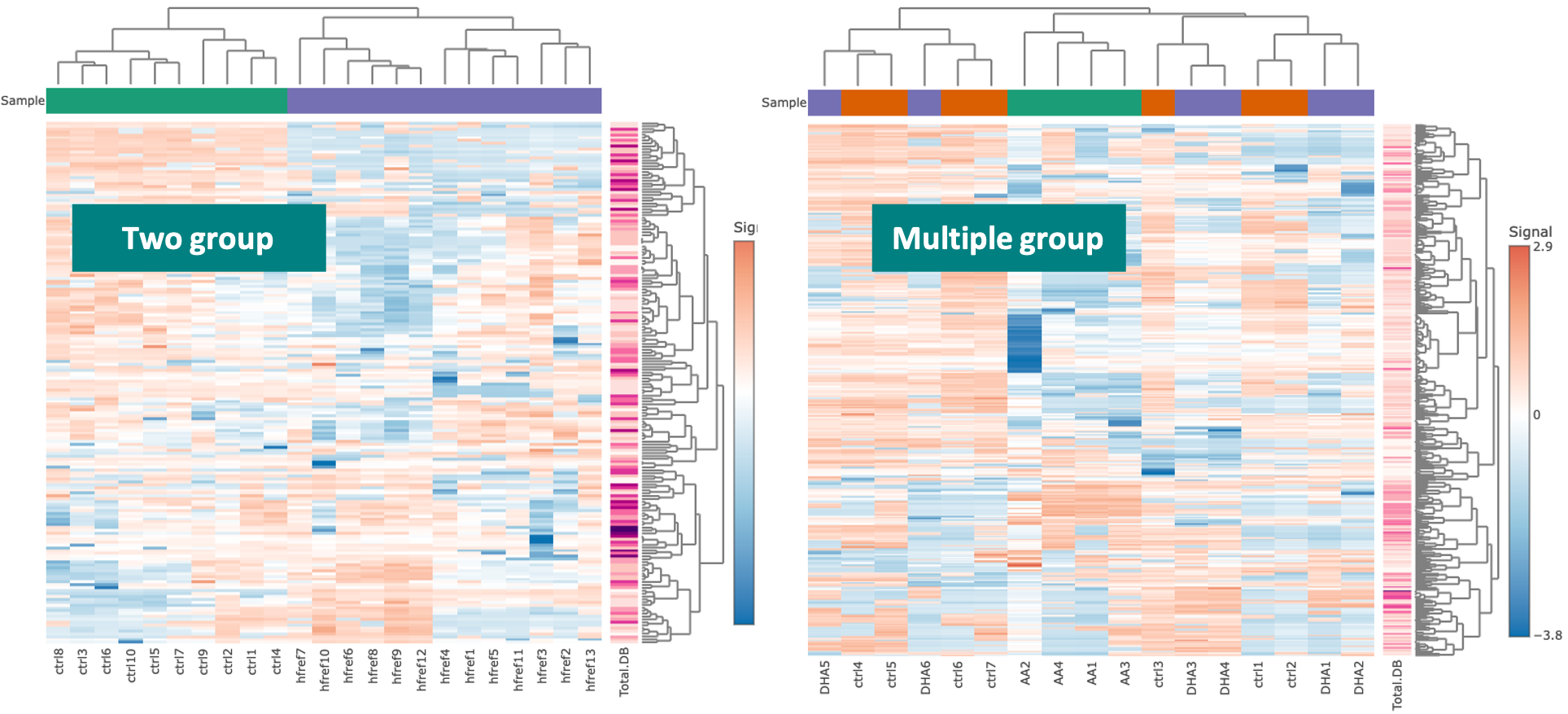 can be reached by clicking pull-down menu. The number of groups shown on (PCA, t-SNE, UMAP) plot can also be input by users (default is two groups).