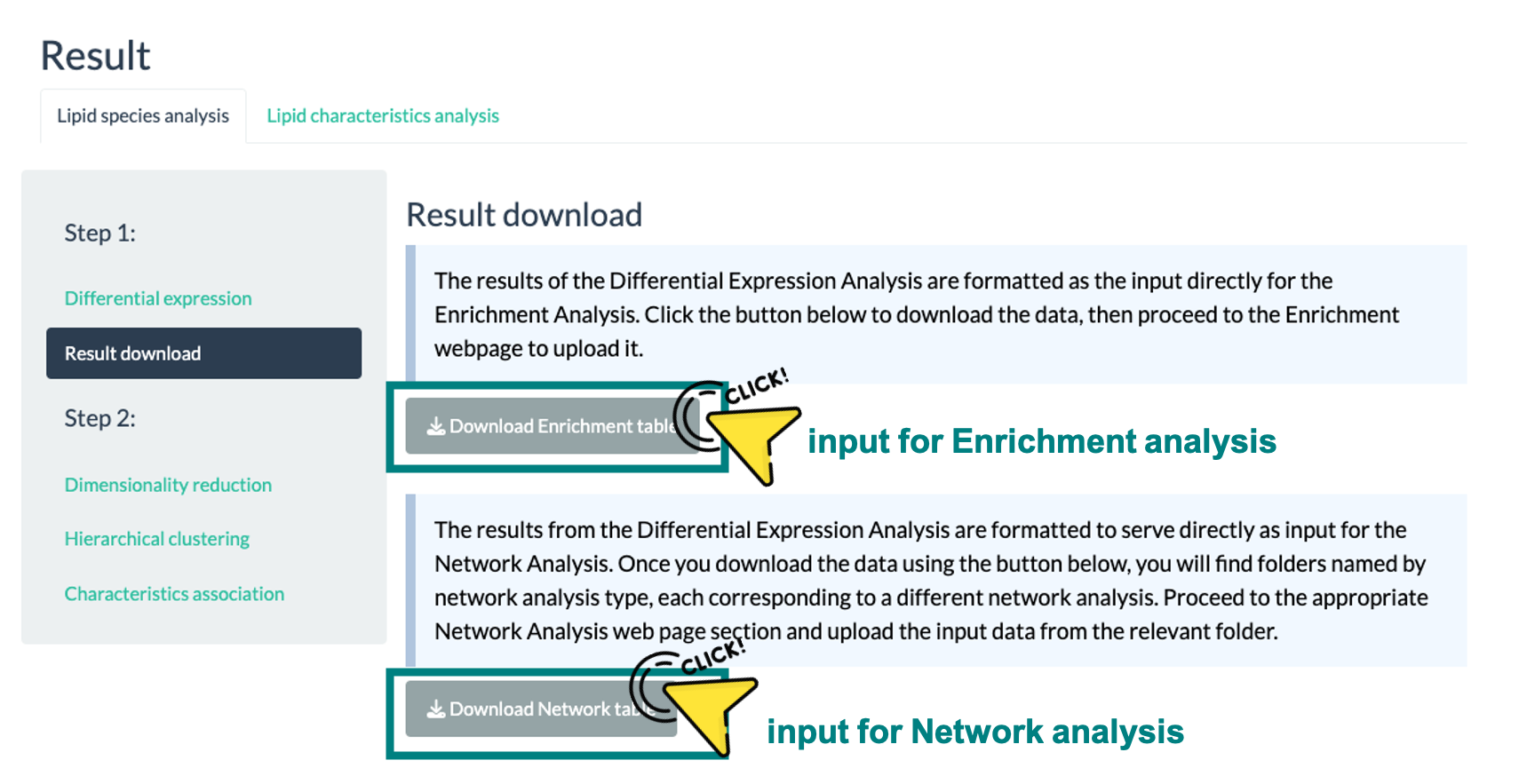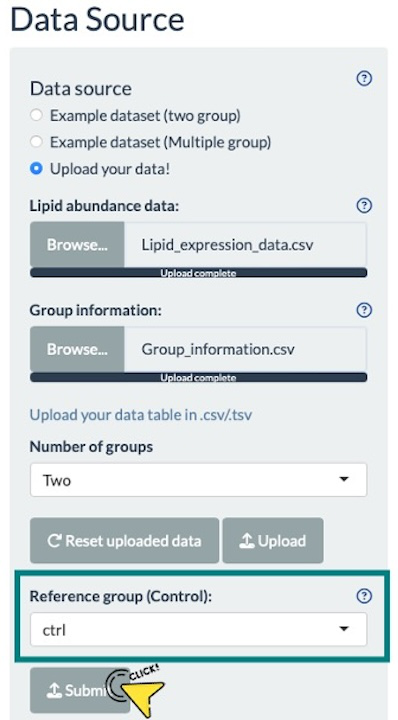 Lipid abundance data can be uploaded by users or example datasets are also provided.