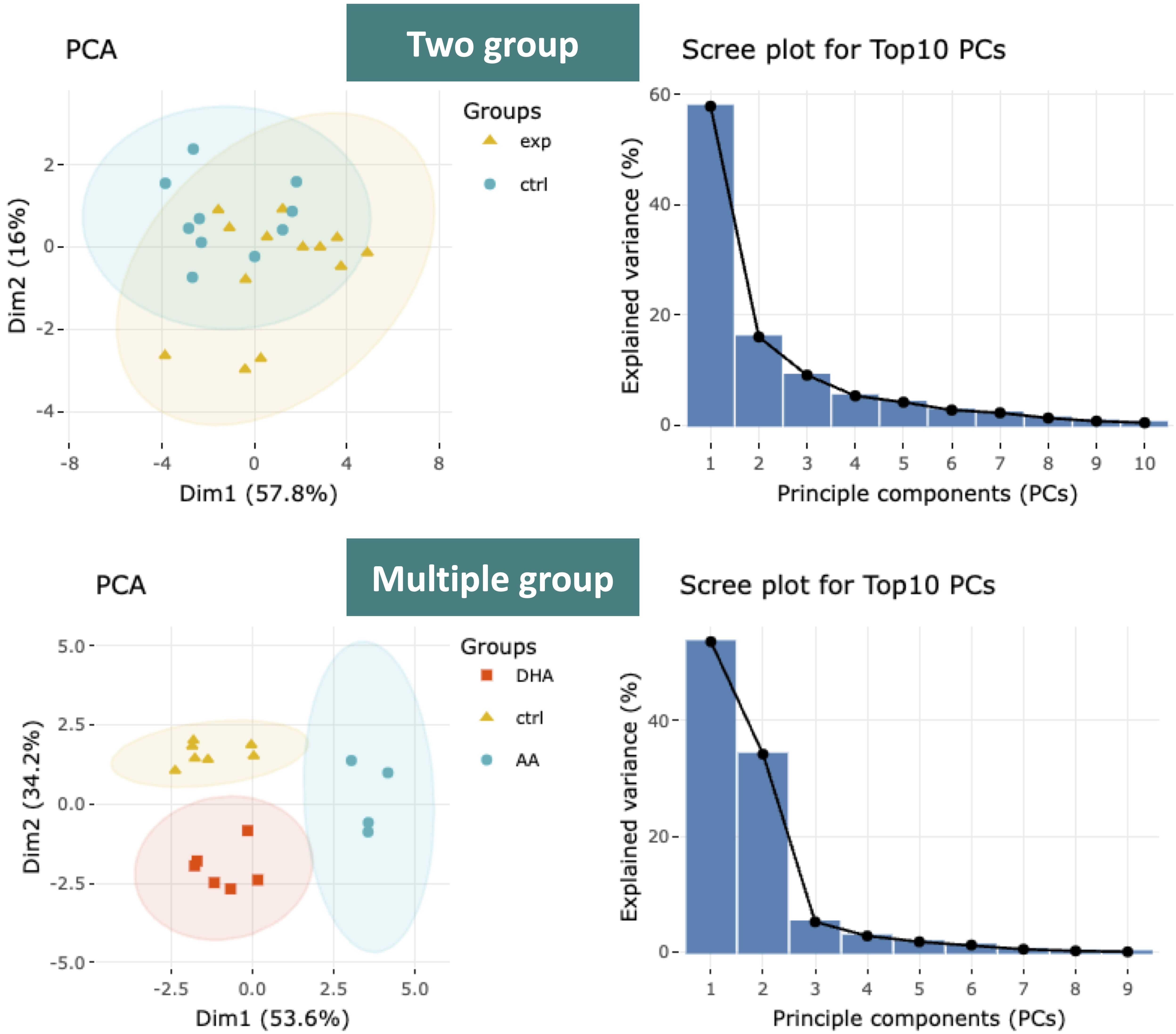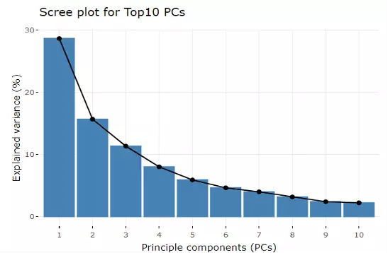 Accompanying with the PCA plot, we offer scree plot criterion, which is a common method for determining the number of PCs to be retained.