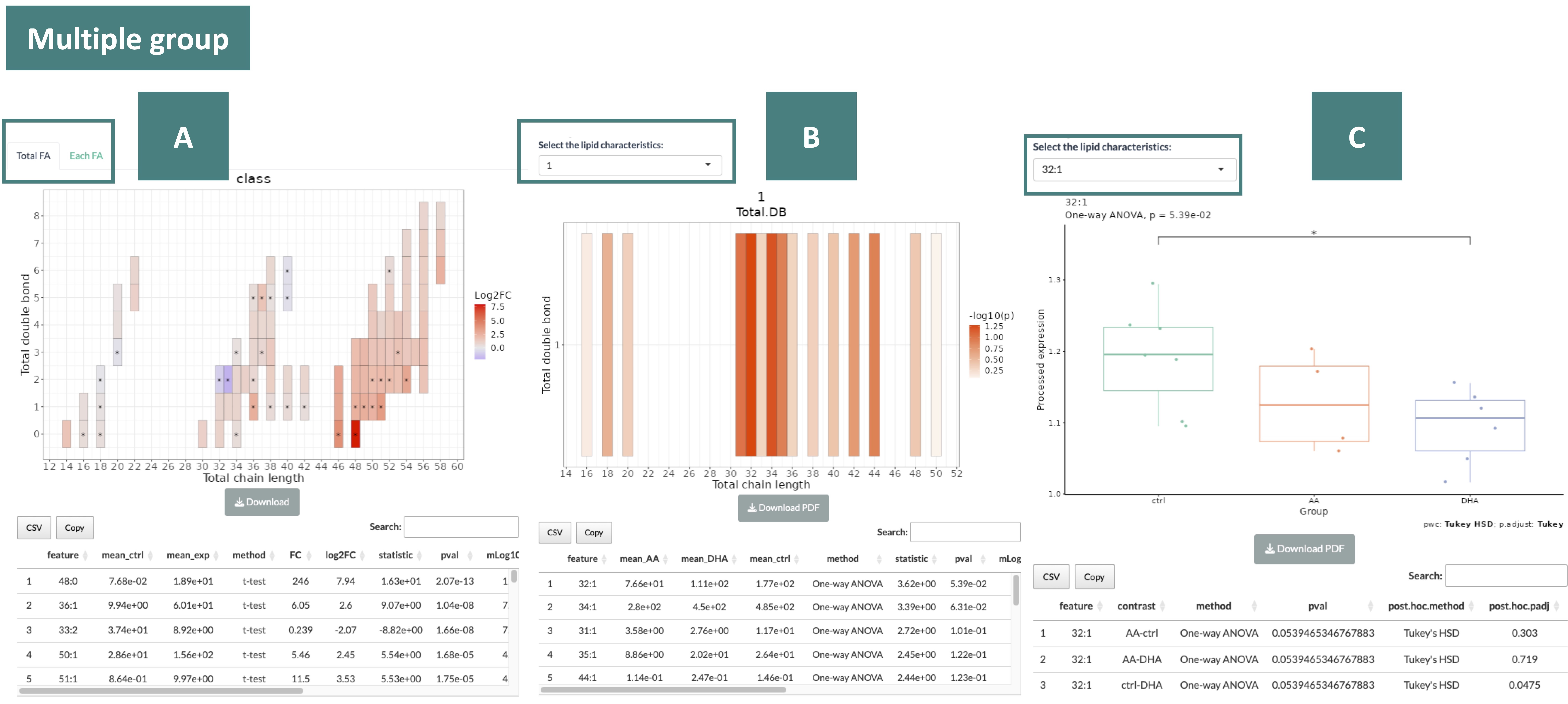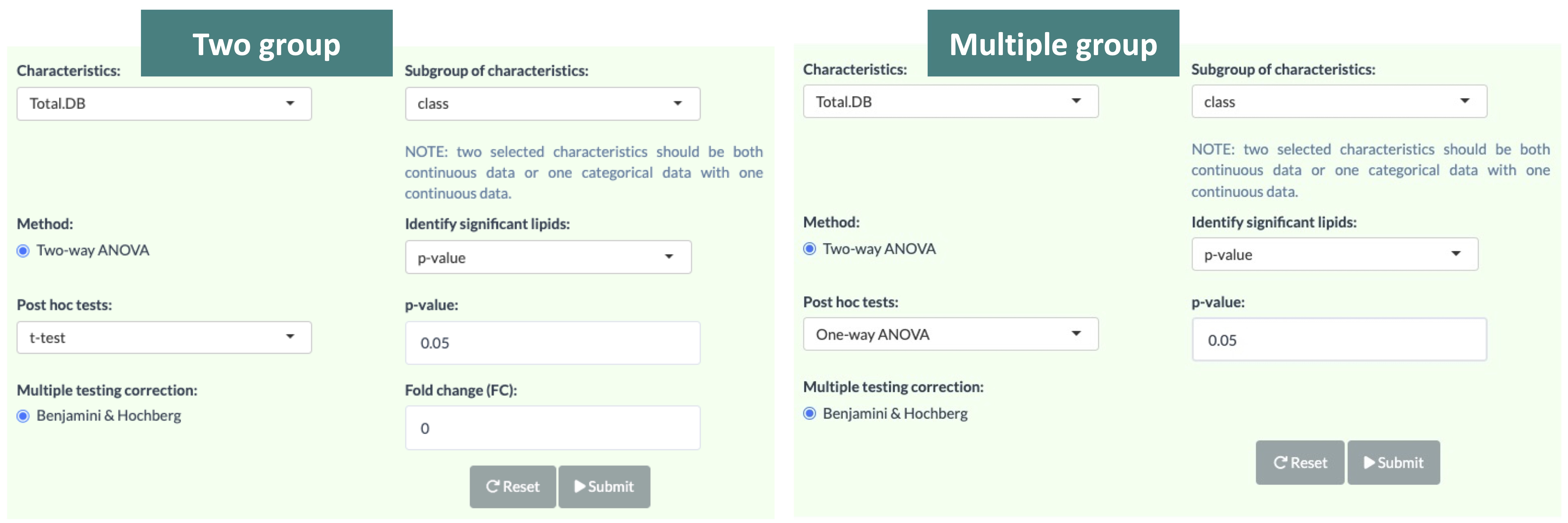 In this page, the lipids will be classified and summed by the user-selected lipid characteristics (e.g., class), then implementing univariate or multivariate linear regression analysis according to whether there is an ‘adjusted table’.