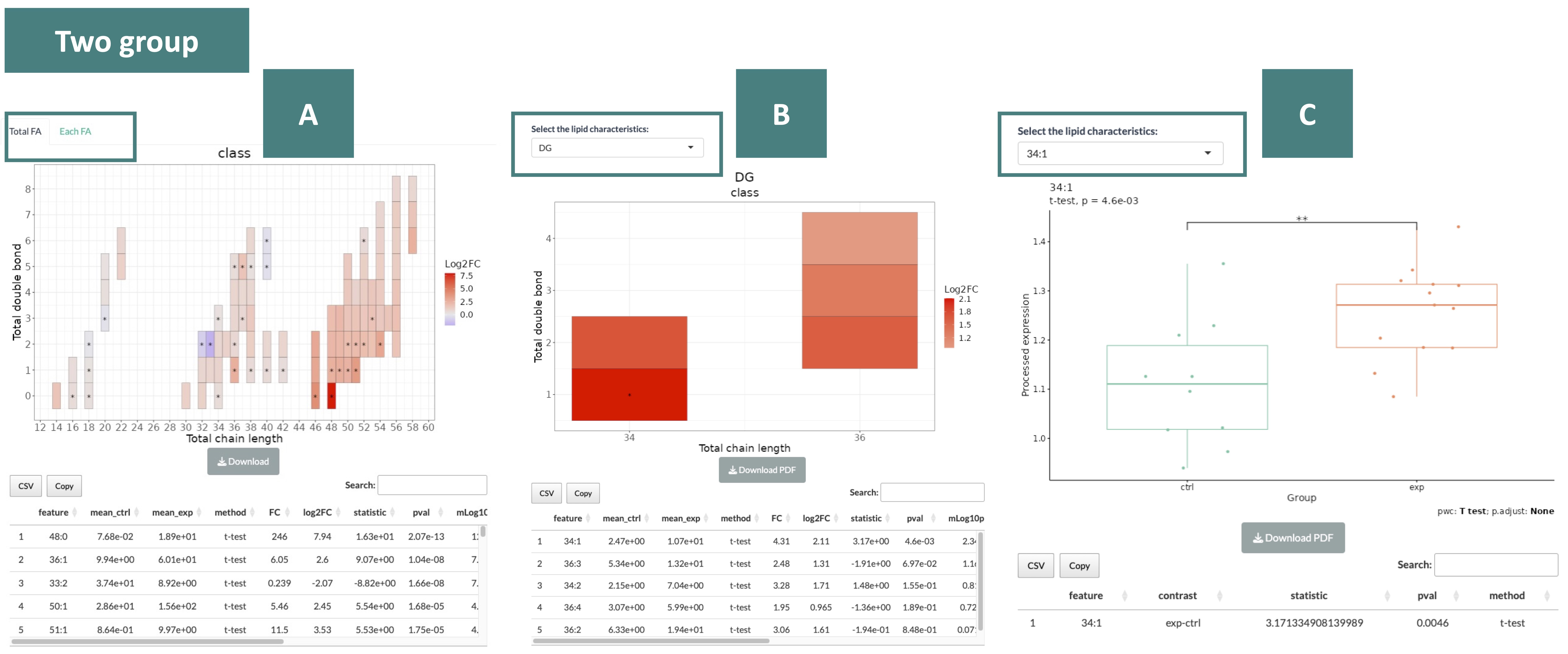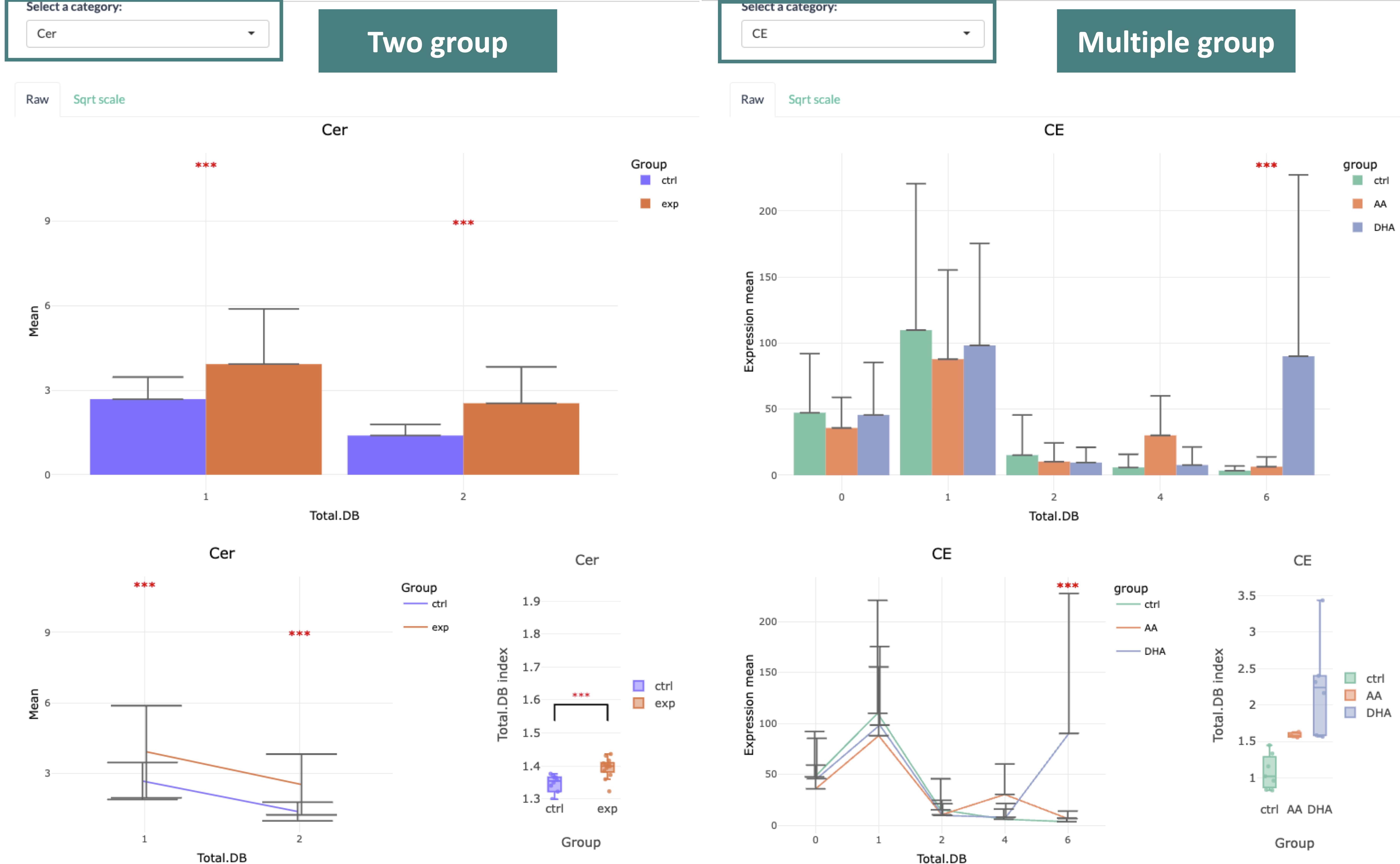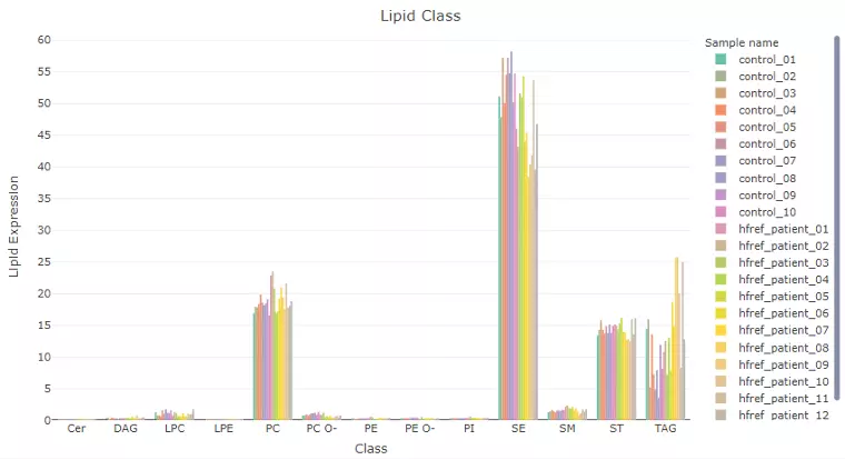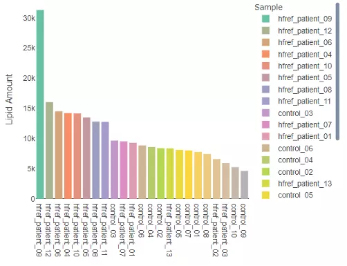 Through these plots, users can easily compare the amount/abundance difference of lipid between samples (i.e., patients vs. control).