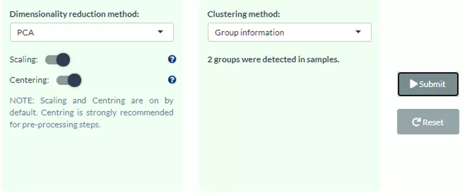 It can help users to avoid the interference of misleading information given by the overall mean. After users submitting the PCA plot will show.