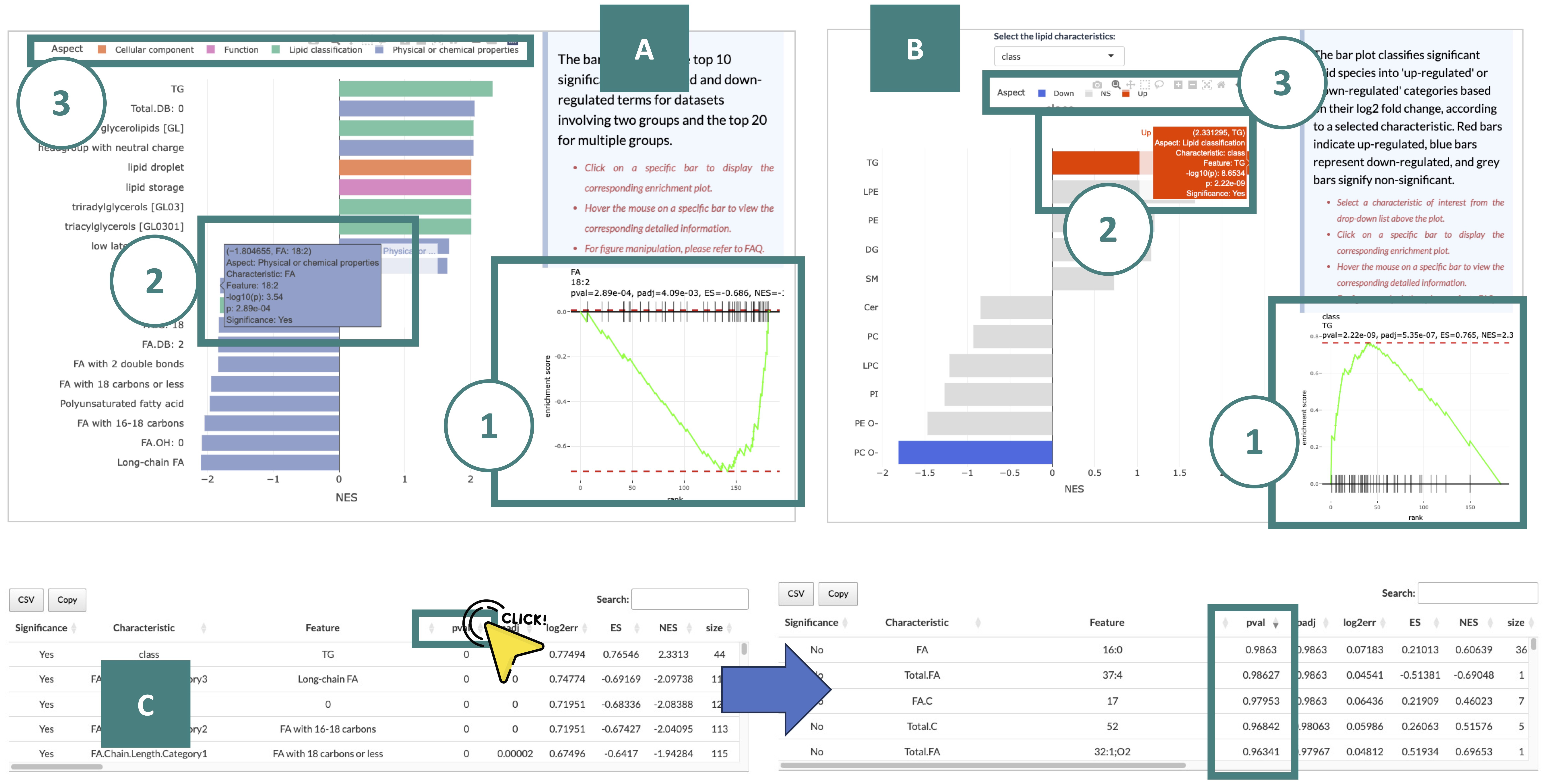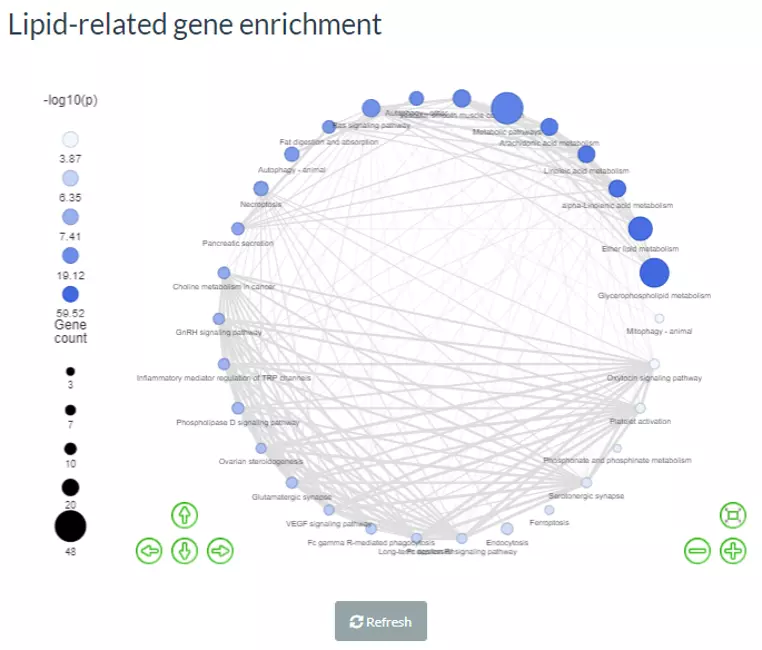 which allows users explore the significant functions and the relationship between lipid-related pathways and genes based on their lipid classes.