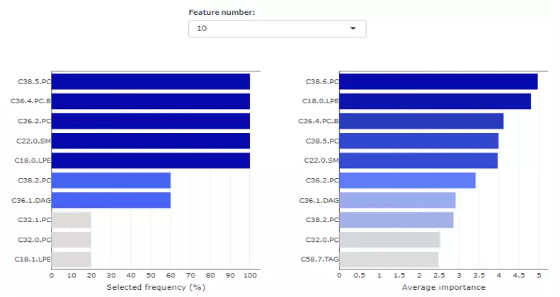 Therefore, in the histogram on the right-hand side, users can find which features (lipid species) contribute more to the user-defined principal component.