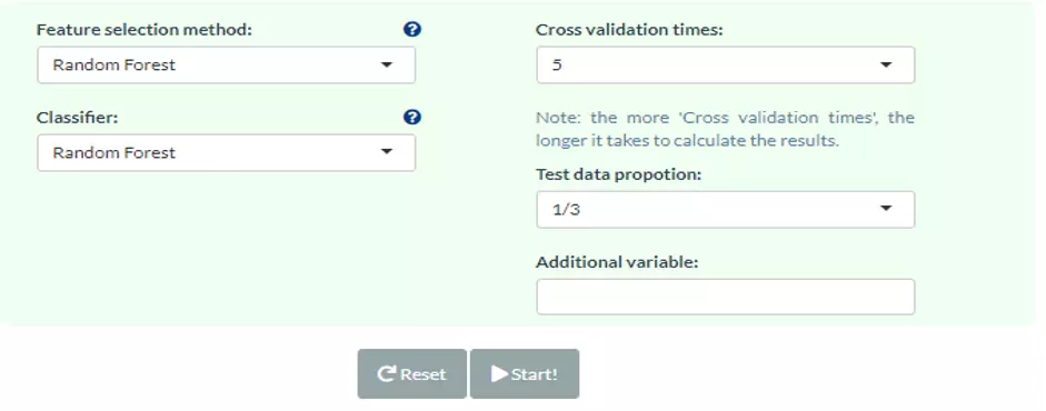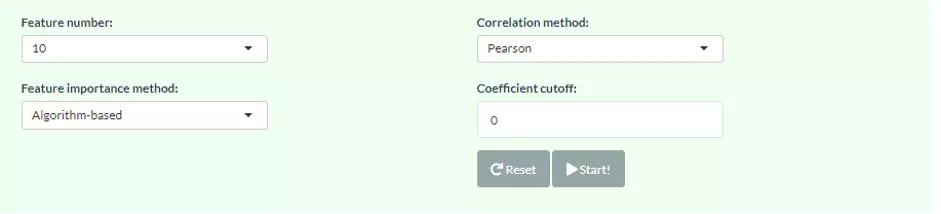 Users can initiate their analysis after reviewing the processed data by clicking the 'Start' button.