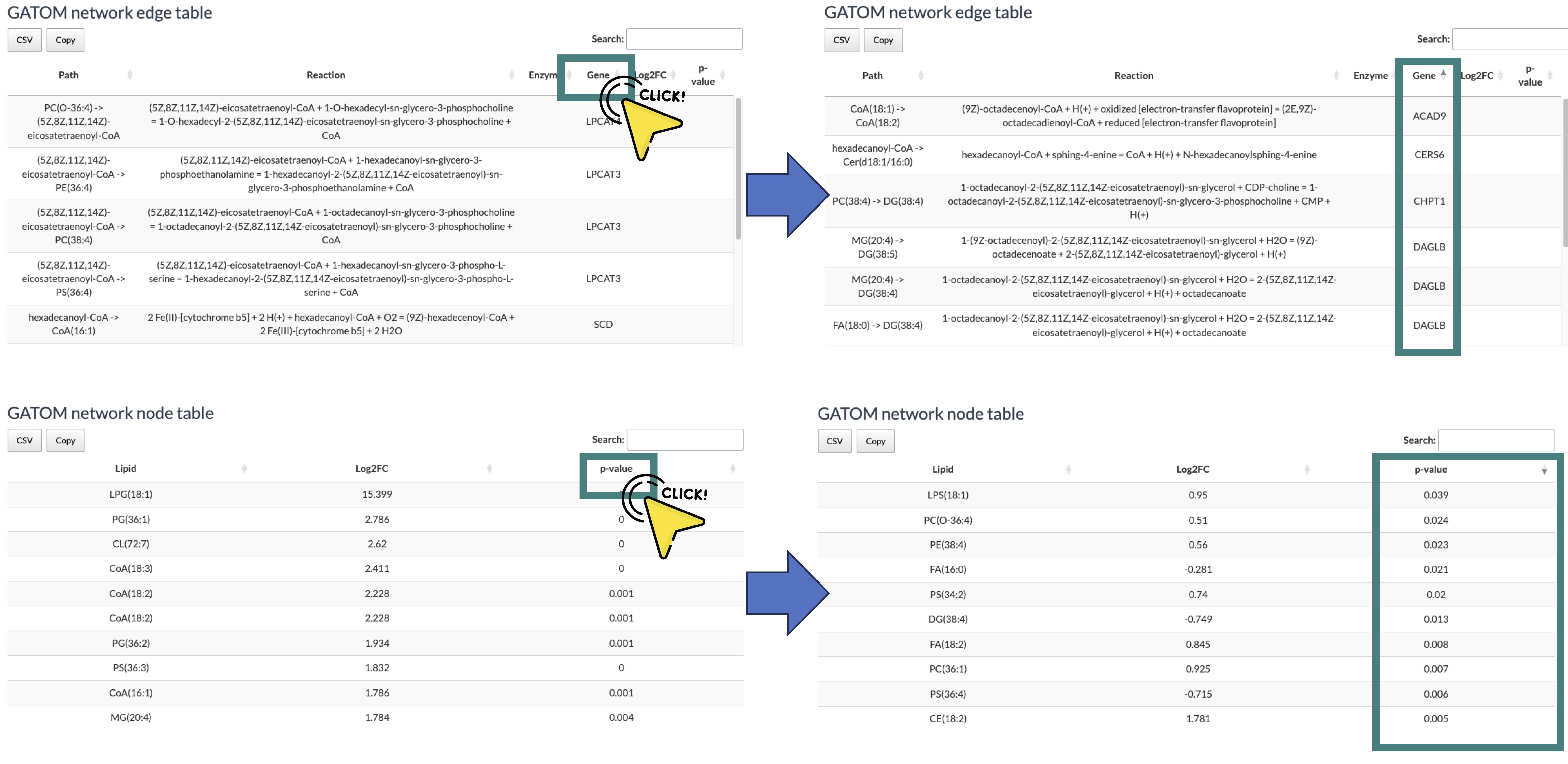 For example, if you click on the column "Gene," the gene names arrange the gene names alphabetically from A to Z.