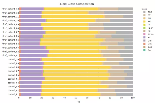 The data revealed dysregulation of individual lipid classes and lipid species in the presence of HFrEF.