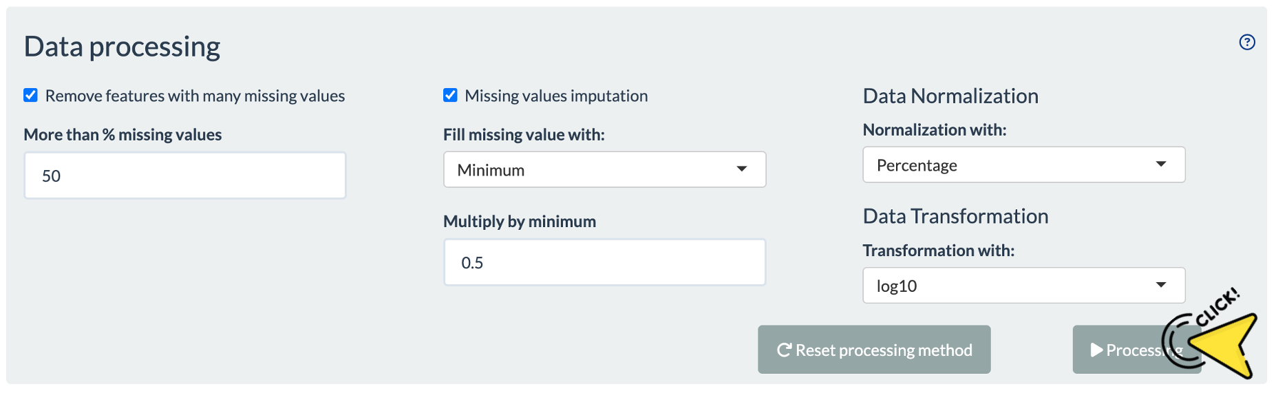 Additionally, for data normalization and transformation, multiple methods are available for selection from a dropdown list, offering flexibility in processing your data.