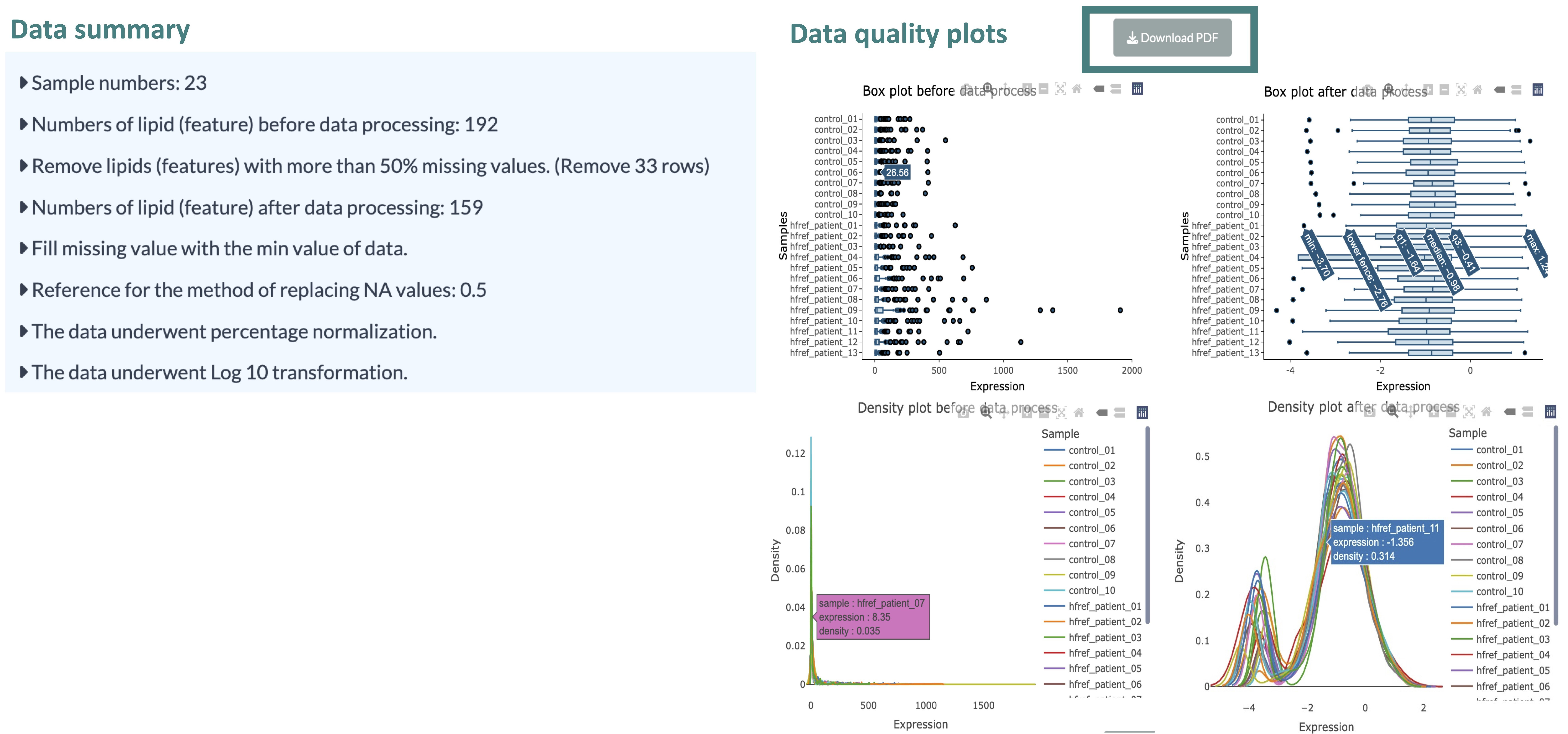 The demo dataset is using data from ‘Adipose tissue ATGL modifies the cardiac lipidome in pressure-overload-induced left ventricular failure.’ by Salatzki, J. et al. (1).