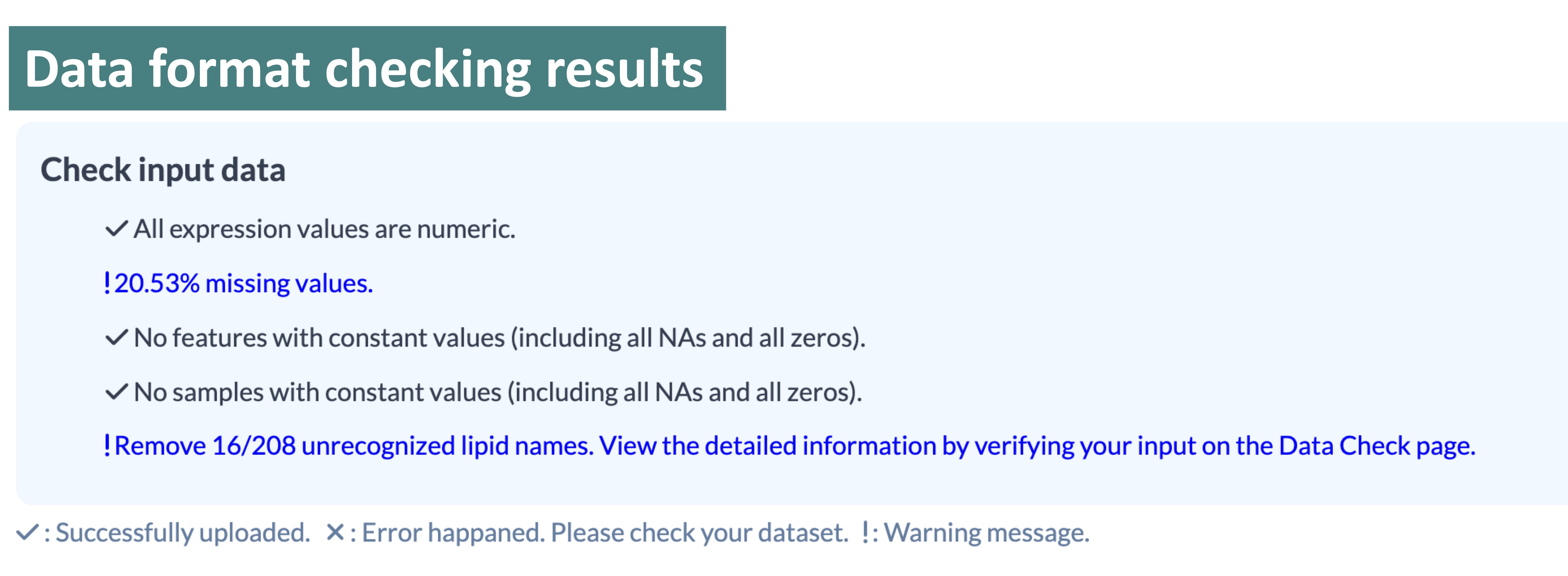 If the data format is found to be incorrect, you can refer to the Data Check webpage for guidance on how to correct them.